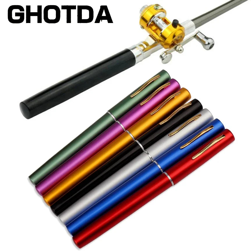 1pc Mini Portable Aluminum Alloy Pocket Pen Shape Fish Fishing Rod Pole with Fishing Reel