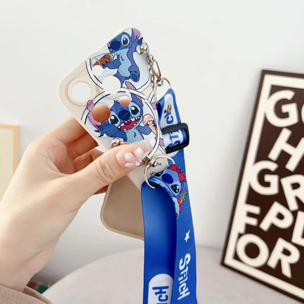 Flowers Stitch Case With Holder Rope For iPhone 6 6s 7 8 SE X Xs Max XR 11 12 13 14 15 16 Pro Max